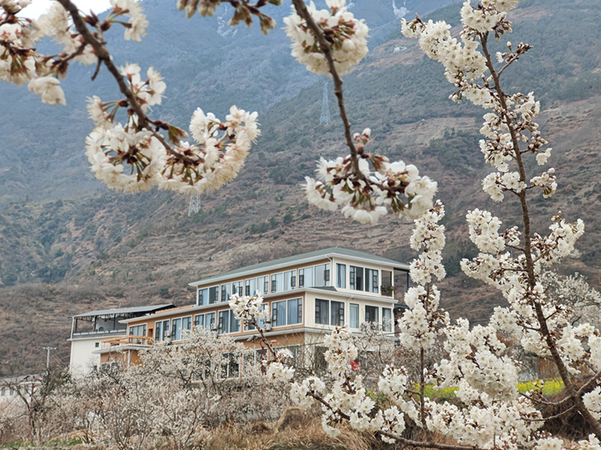 不同于油菜花的燦爛,瀘定縣冷磧鎮千畝櫻桃花,堆雪疊紗、滿山漫白,為整個山谷的金黃璀璨增添了一道恬謐的寧靜。