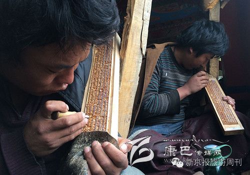 白玉的刀,還有一把不能不提,那就是刻刀。在白玉寺內,有三十多年刻木版經書的傳統,每天都有十幾個人手拿刻刀,在窗戶下,認真地雕刻著。