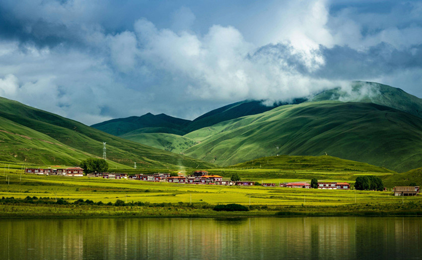 如果當(dāng)天天氣非常好,信步走向湖邊,潮濕清新的空氣撲面而來。白云掛在半空忽忽悠悠飄來飄去最終匯集在馬日岡神山之巔,湖邊的坡地上光影快速游動,讓人不禁心生疑竇——此處就是天堂。